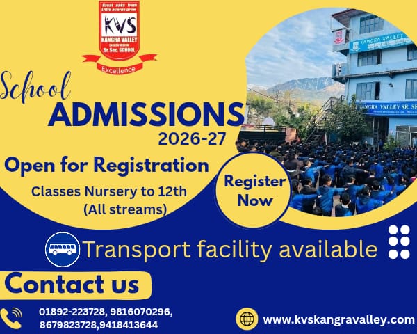 In the existing ocean of educational institutions, Kangra Valley School may sound a mere drop. KVS truly believes in “Your Child Is Our Child” by establishing a liaison among the teachers and the parents with regards to the work done by the students in the school and at home. But if you are passionate to garner your child with the excellence & the knowledge that KVS can serve than bringing your child here is the best gift you can give to your child. KVS is an English medium school rendering skills like academic winners, progressive thinkers, rhetoric communicators and well-groomed citizens to its students ranging from Pre-nursery to Senior Secondary level. The school is affiliated to H.P Board.